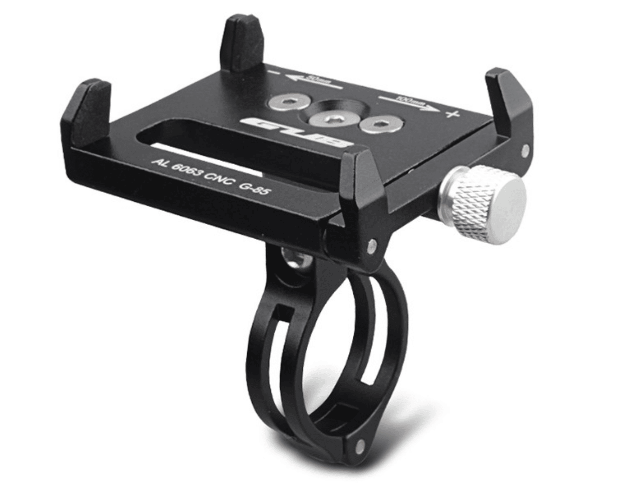 Universalus telefono laikiklis saugiai prilaiko 5,5–10 cm pločio išmaniuosius telefonus. Galima montuoti vertikaliai arba gulsčiai, todėl patogu naudoti navigaciją, treniruočių programas ar muzikos valdymą.